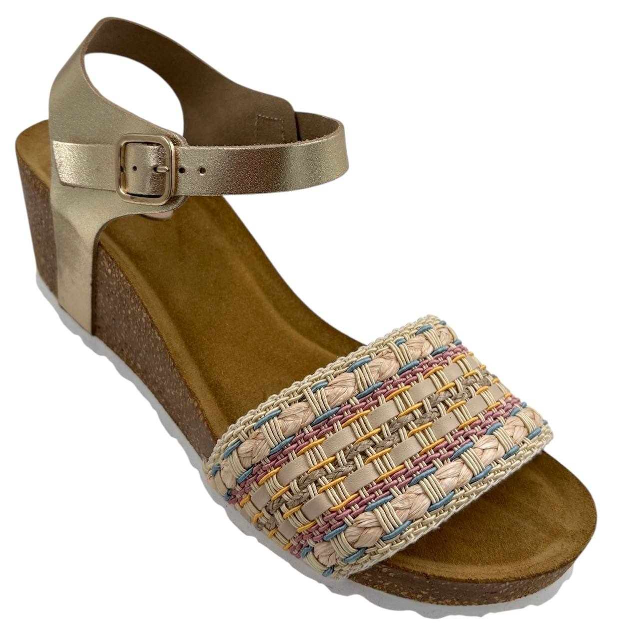 Cuña de corcho natural fabricada en piel de serraje , Cuenta con una planta de piel <<Memory gel>> que aporta esa comodidad y ligereza que necesitas en tu día a día
